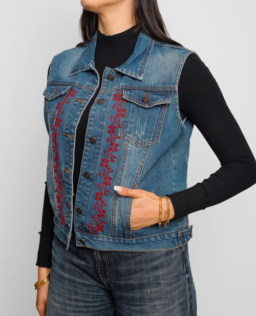 Embroidered Denim Vest — Palestinian Handmade Detail